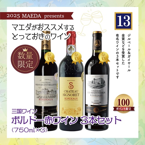 [13]ボルドー赤ワイン3本セット 750ml×3