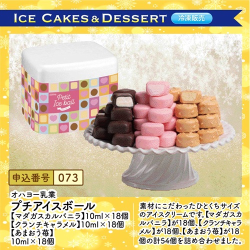 素材にこだわったひとくちサイズのアイスクリームです。【マダガスカルバニラ】が18個、【クランチキャラメル】が18個、【あまおう苺】が18個の計54個を詰め合わせました。