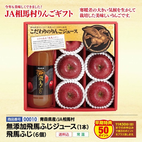 0010)青森県JA相馬村 無添加飛馬ふじジュース(1本) 飛馬ふじ(6個)