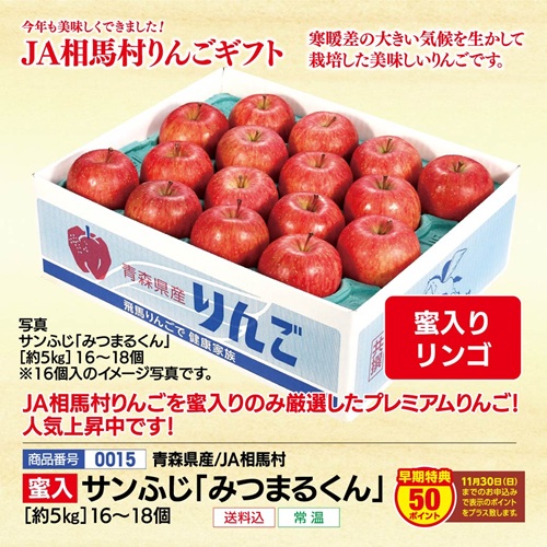 0015)青森県JA相馬村 蜜入 サンふじ「みつまるくん」(約5kg)16~18個