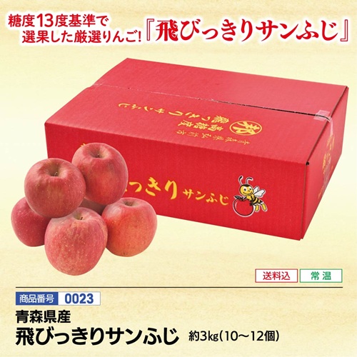 0023)青森県産 飛びっきりサンふじ 約3kg(10~12個)