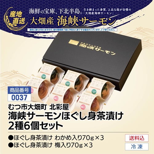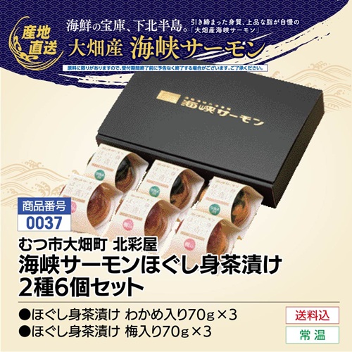 0037)むつ市大畑町北彩屋 海峡サーモン ほぐし身茶漬け2種6個セット