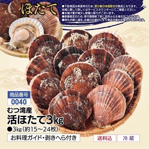 0040)むつ湾産 活ほたて3kg (約15~24枚)