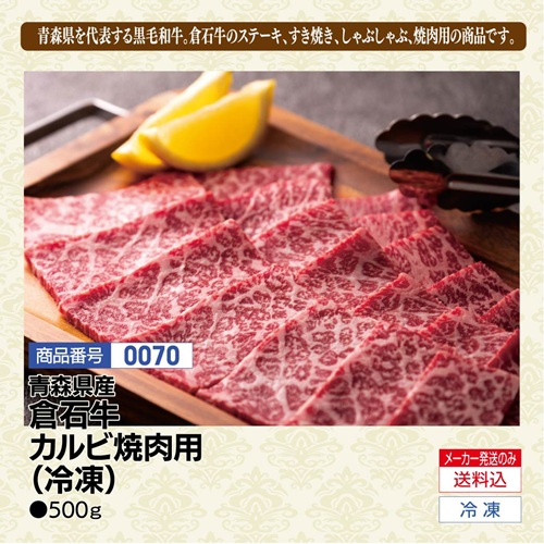 0070)青森県産 倉石牛カルビ焼肉用 500g(冷凍)