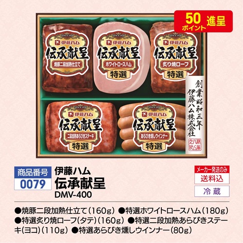 ●焼豚二段加熱仕立て(160g) ●特選ホワイトロースハム(180g) ●特選炙り焼ローフ(タテ・160g) ●特選二段加熱あらびきステーキ(ヨコ・110g) ●特選あらびき燻しウインナー(80g)