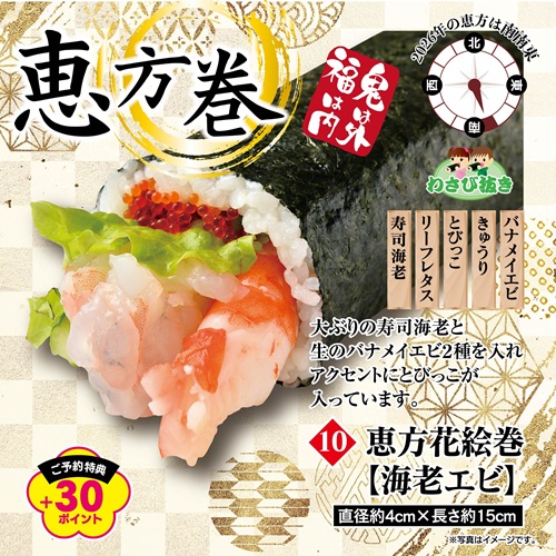 大ぶりの寿司海老と生のバナメイエビ2種を入れアクセントにとびっこが入っています。